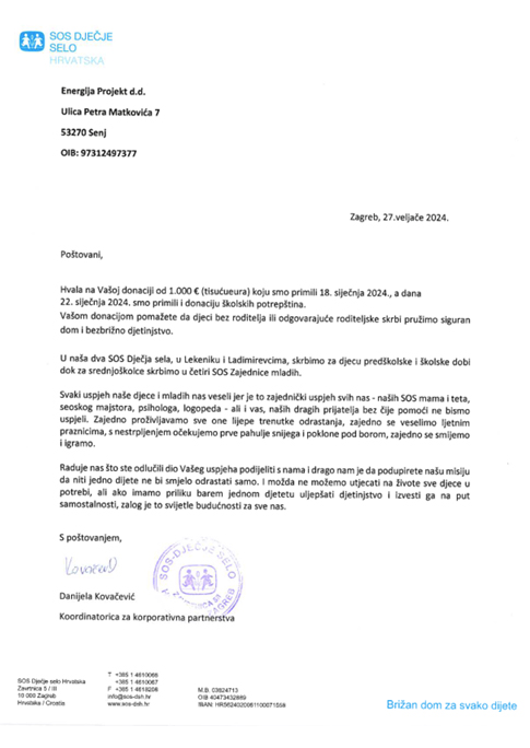 ENERGIJA PROJEKT donates to SOS Children Village